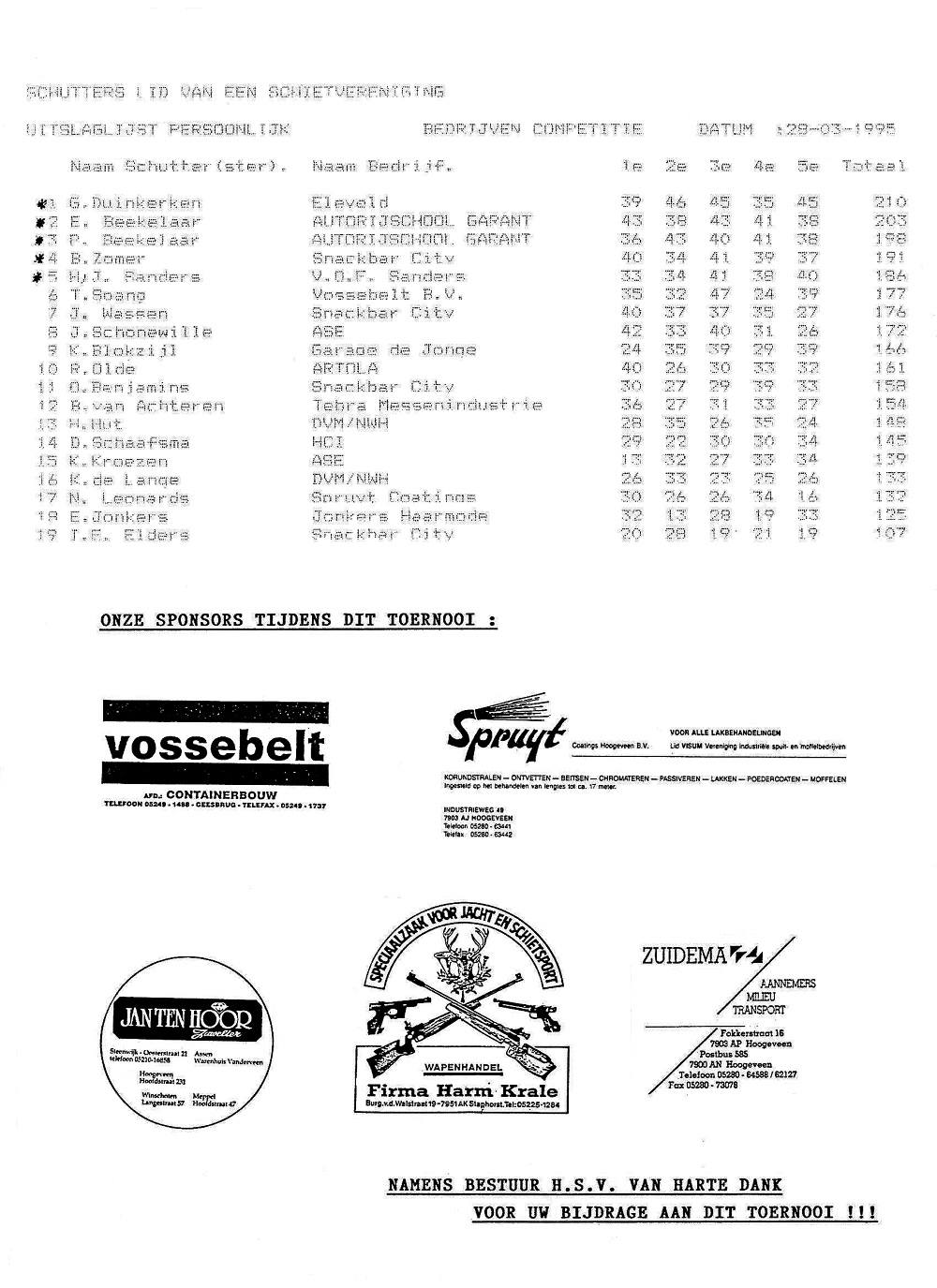 © Hoogeveensche Schiet Vereniging Maart 1995