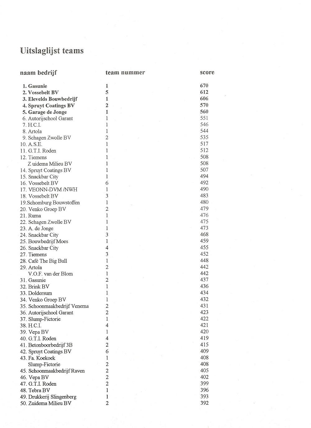 UITSLAGEN BEDRIJVEN TOERNOOI 1996