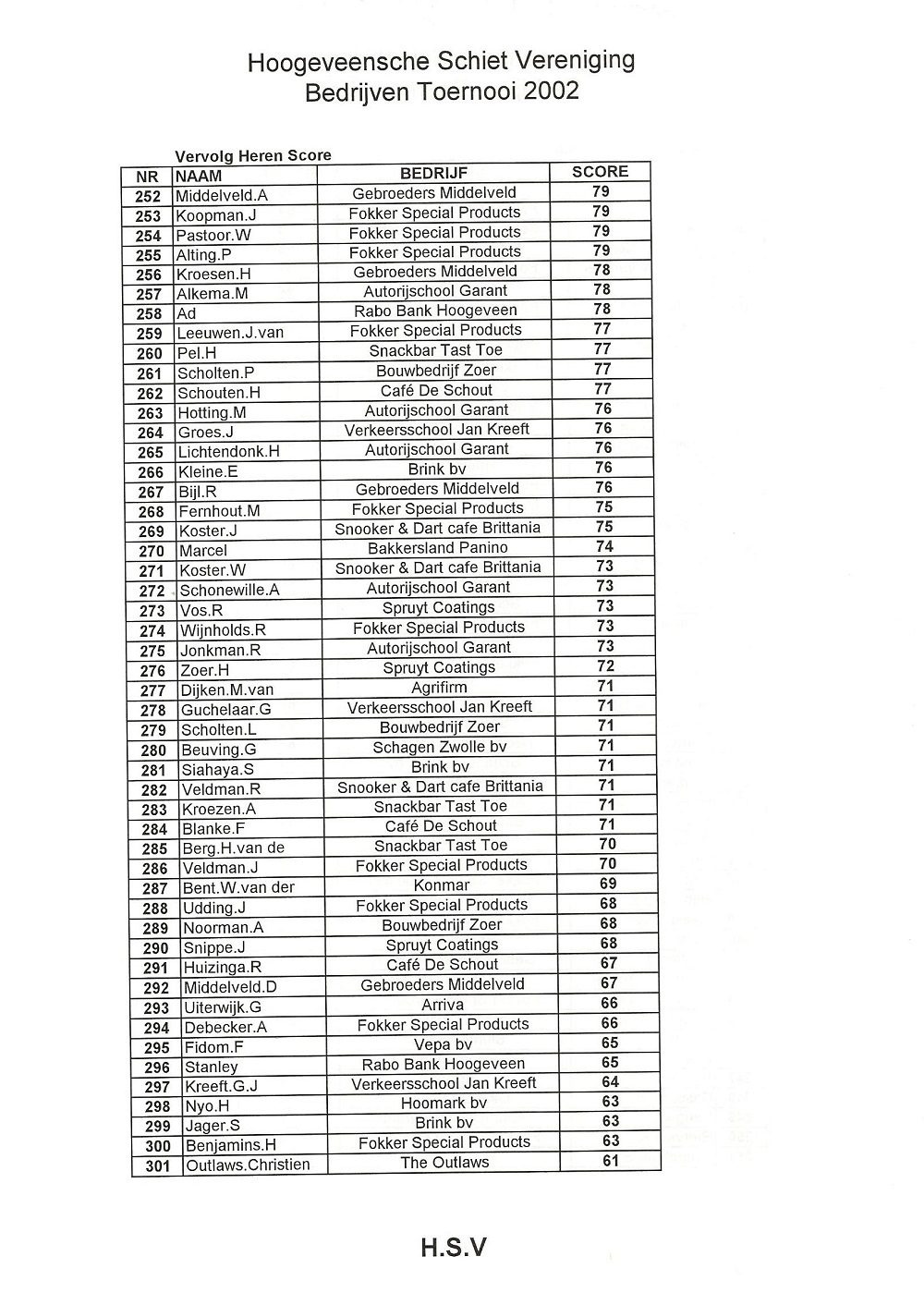 © Hoogeveensche Schiet Vereniging Maart 2002