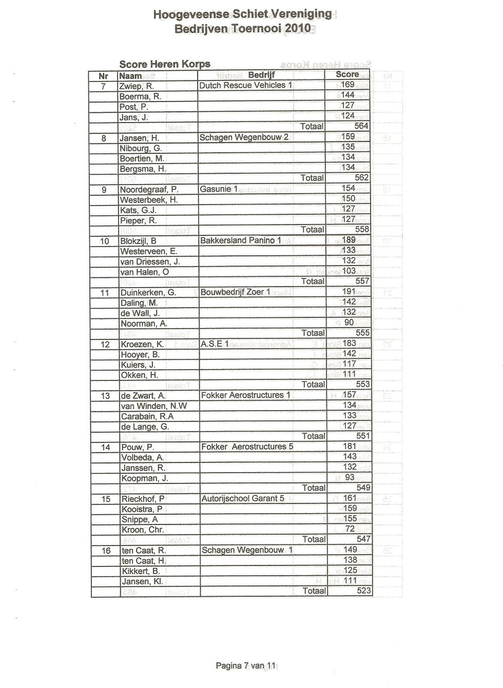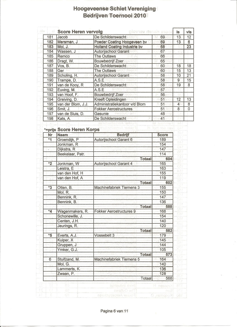 ARCHIEF UITSLAGEN BEDRIJVEN TOERNOOI 2010