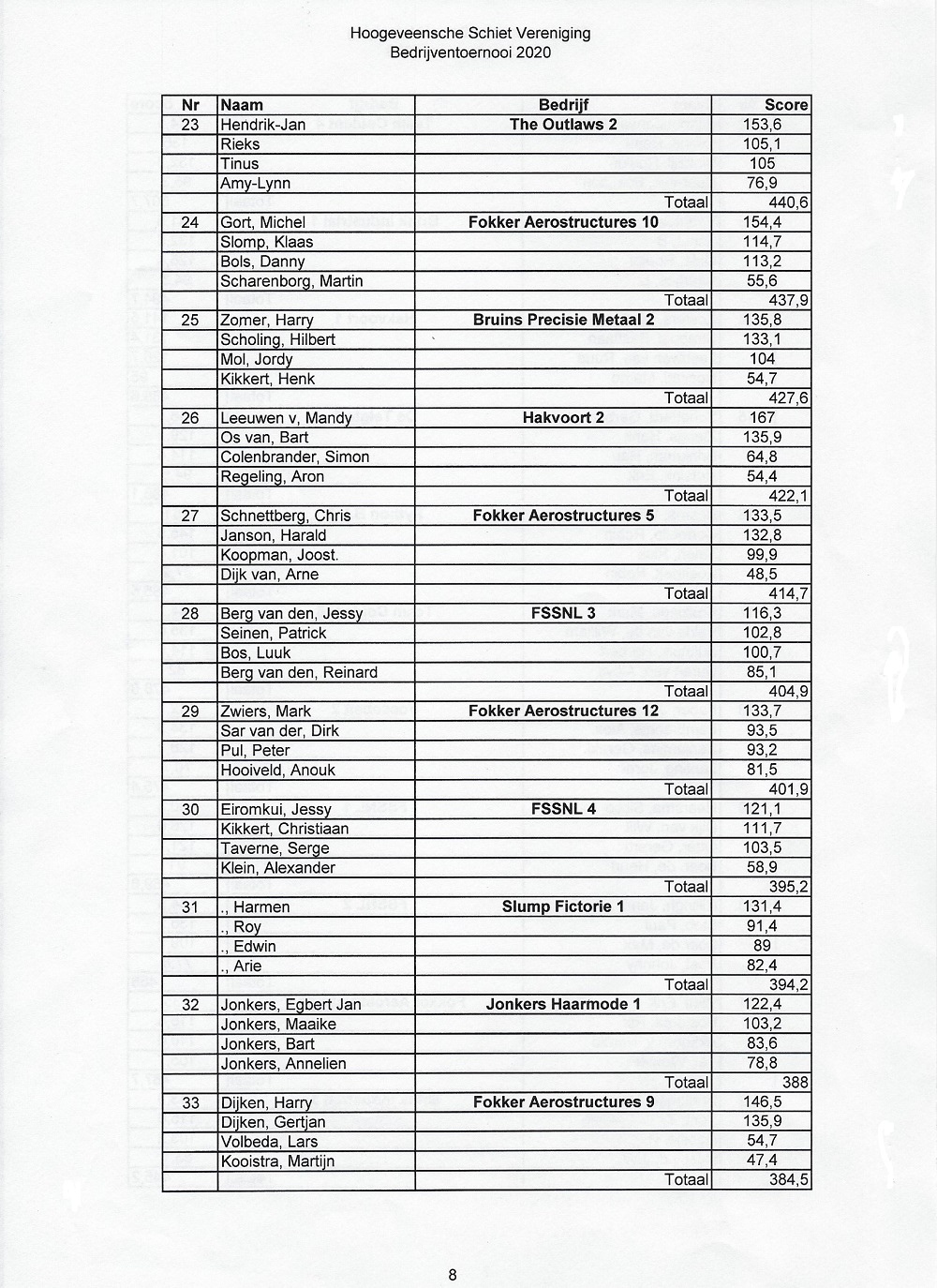 UITSLAGEN BEDRIJVEN TOERNOOI 2020